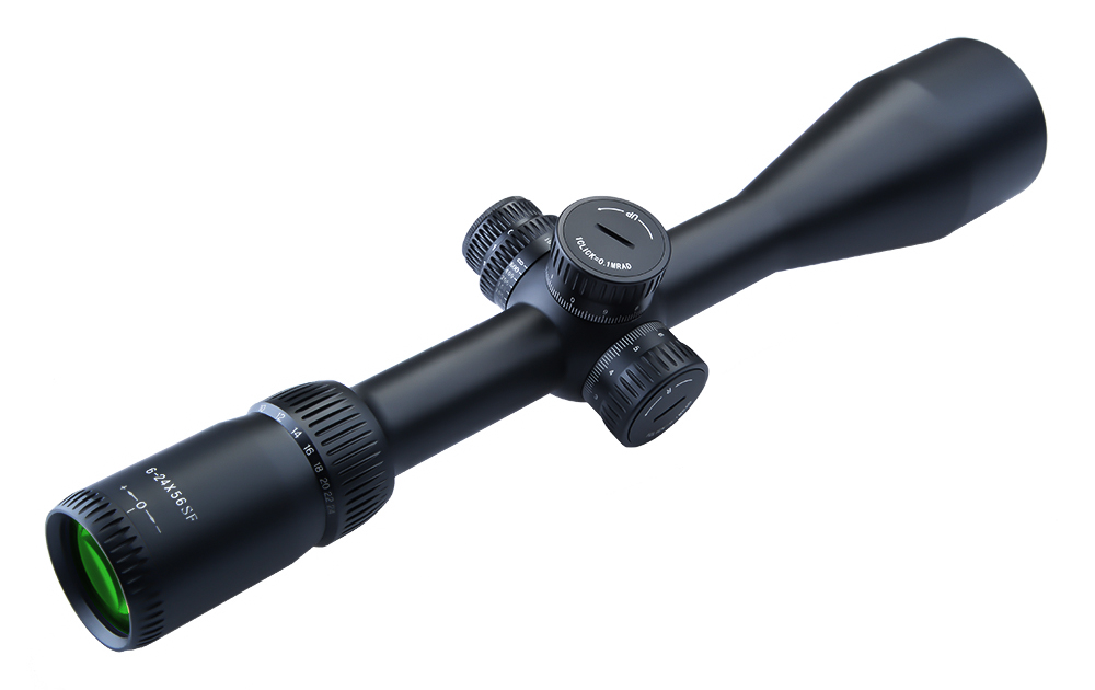 6-24x56 IR SFP SP Glass Reticle Ultra-Wide Field of View Zero Stop Turret Rifle Scope for close to long range shooting.